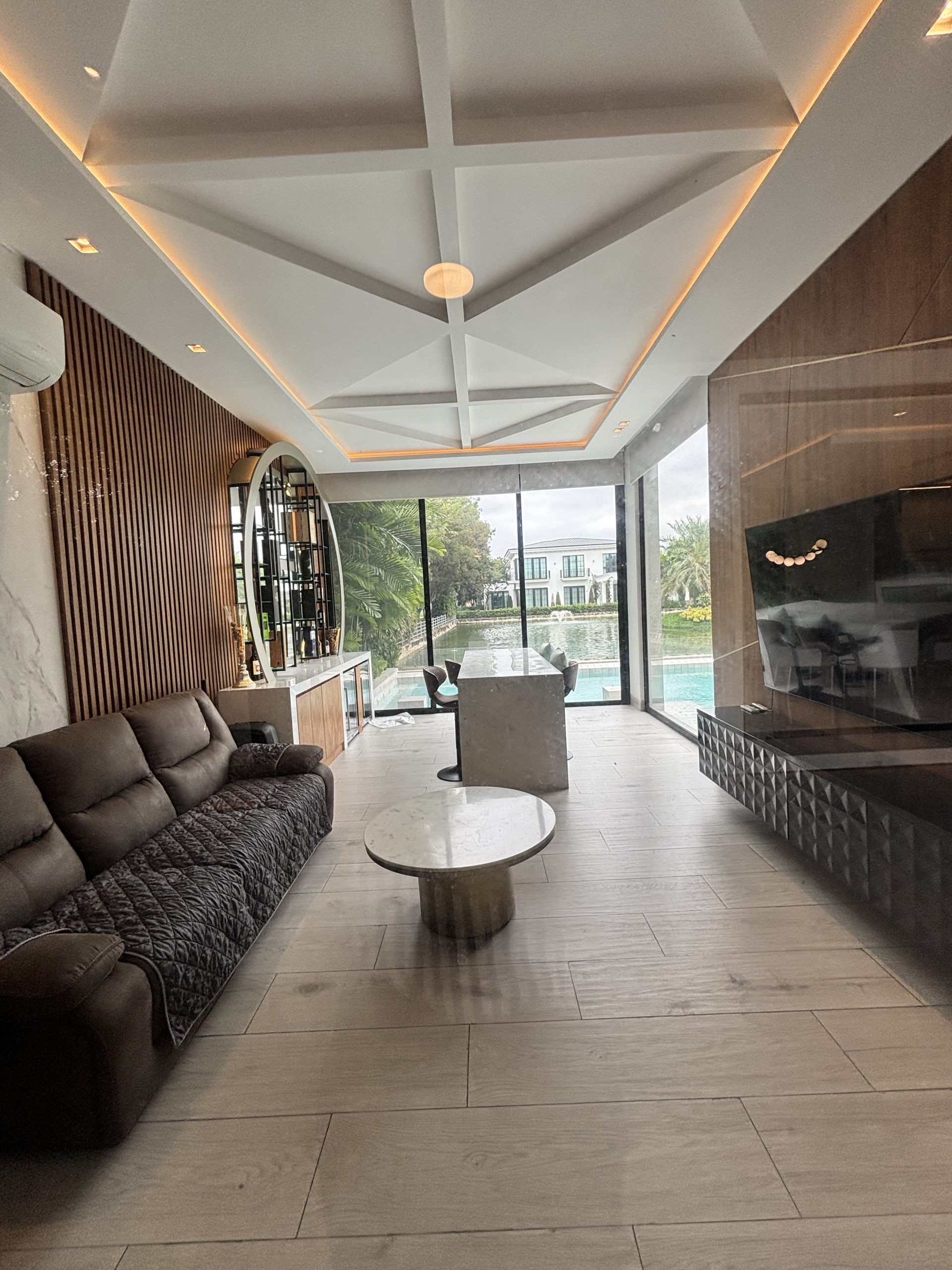 • Patio con piscina climatizada al lago, fire pit, área bbq y sala de música/tv