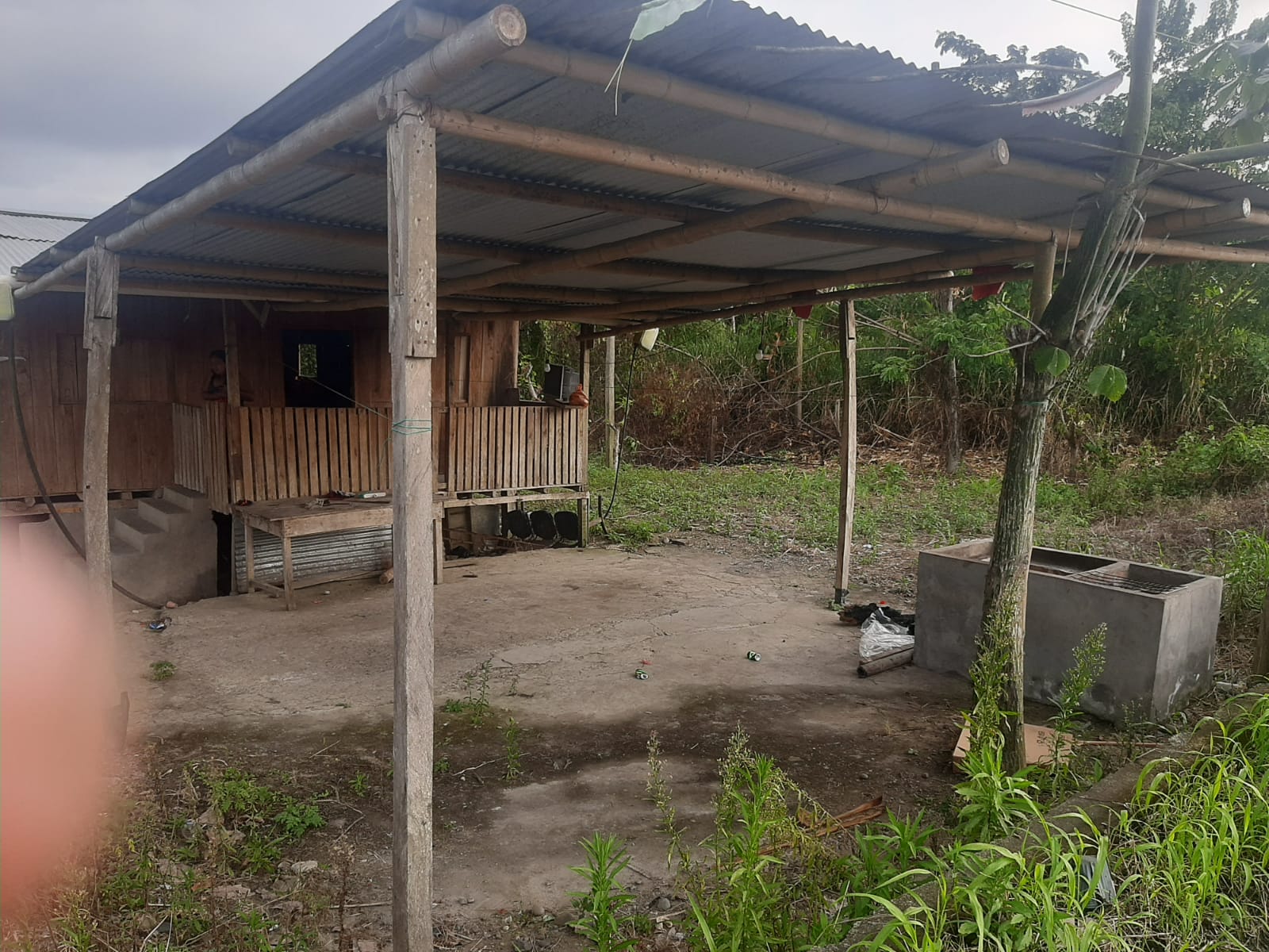 área total de 394 m2, de forma rectangular semiplano, además cuanta con una construcción básica de cemento y caña