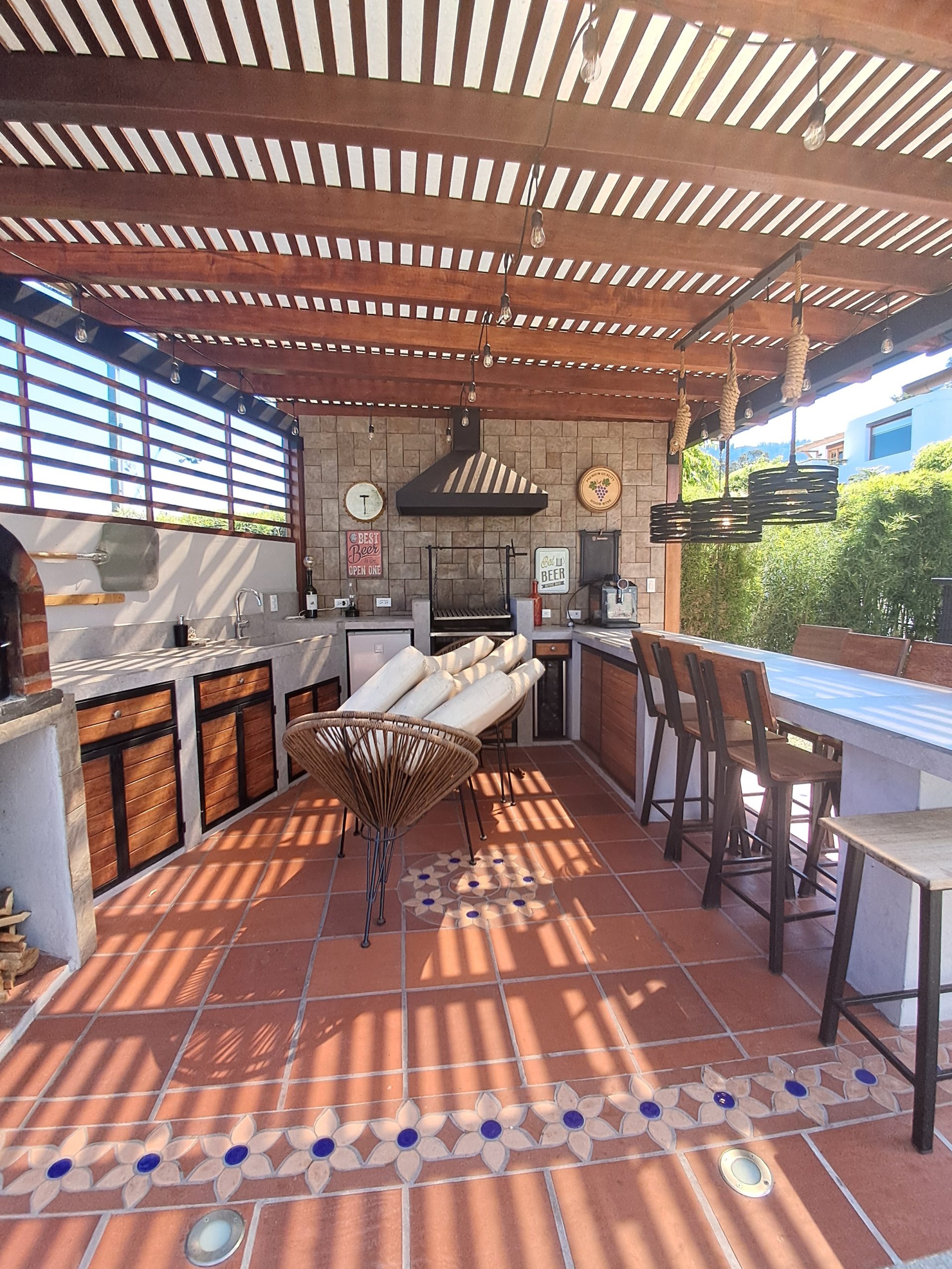 2 pérgola con puertas corredizas de vidrio para salir a la sala exterior, horno de leña, parrilla construida, área de fogata de leña hace 2 años