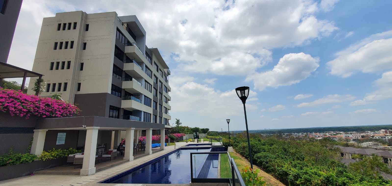 El edificio cuenta con áreas comunes ideales para reuniones con familiares o amigos en la piscina.