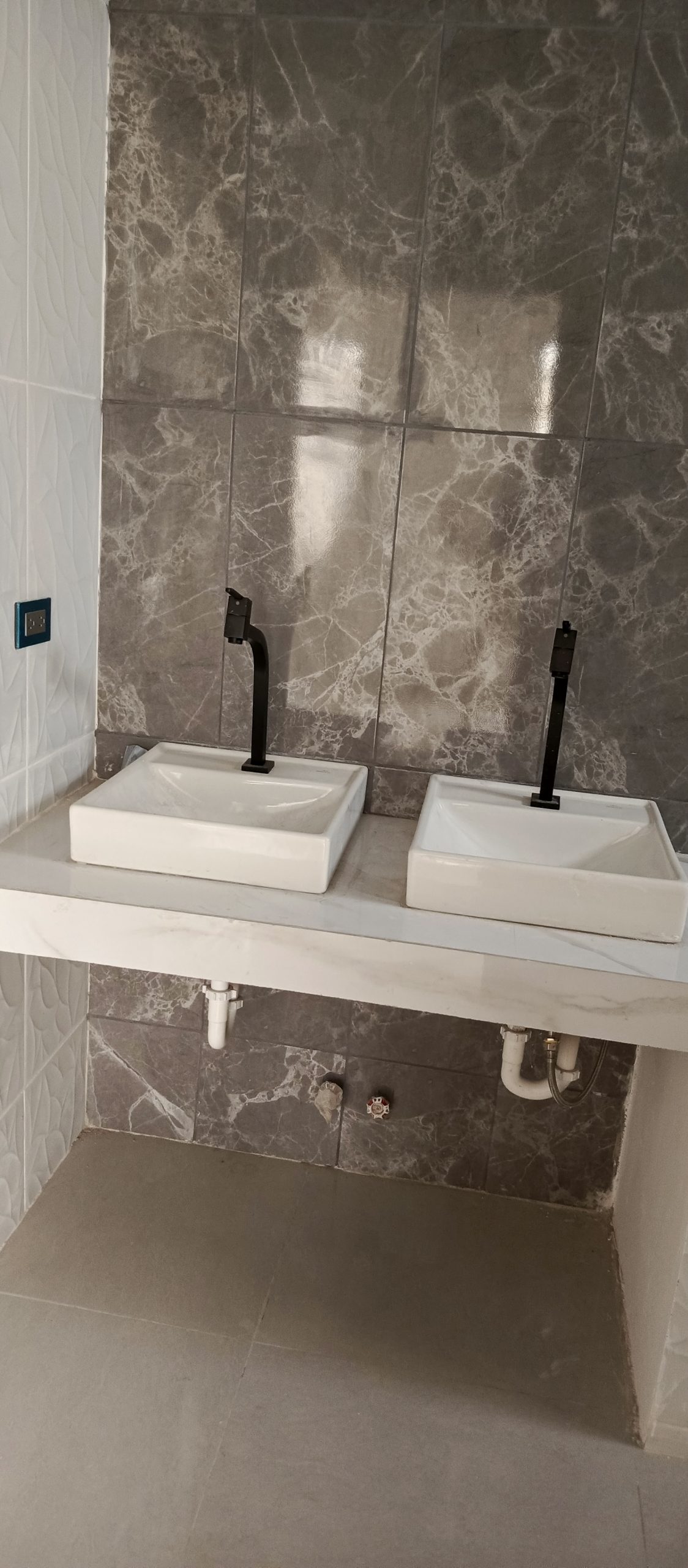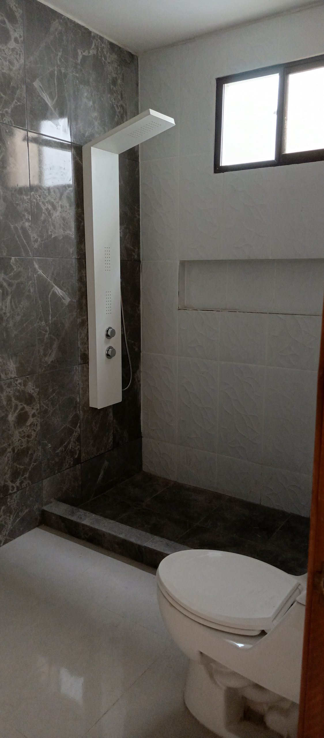 * Cerámica de piso a techo en baños