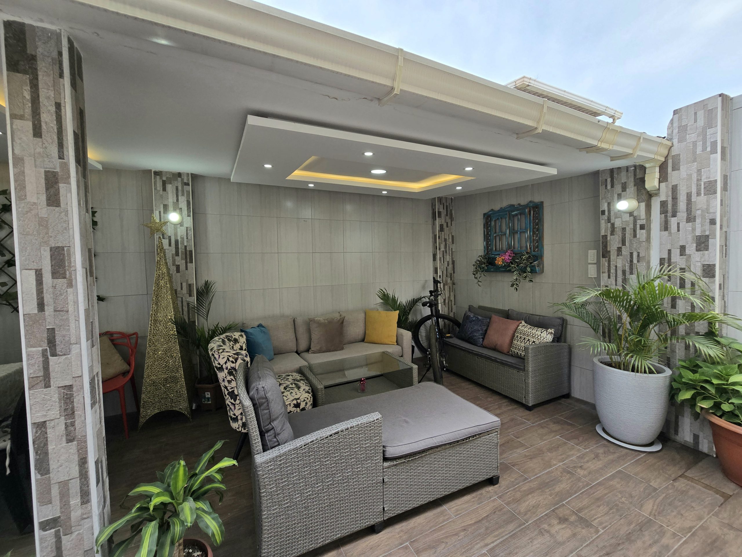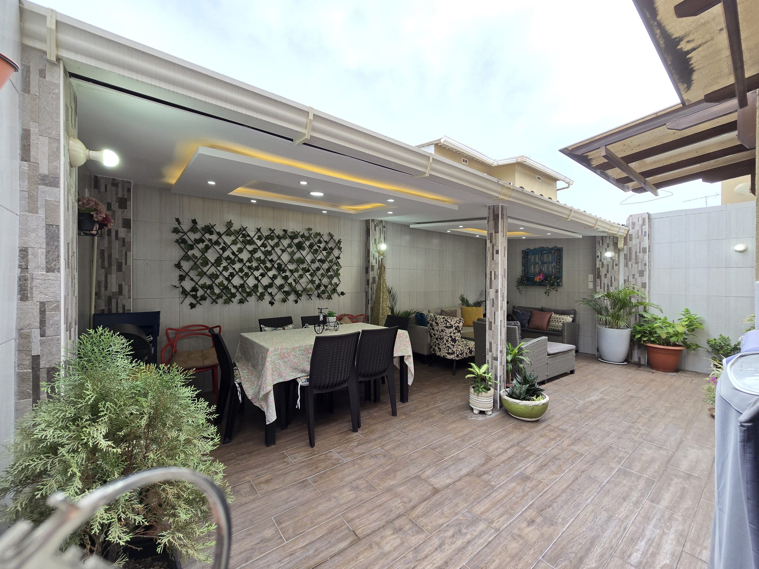 ▪︎ Patio social muy acogedor con pérgola. ideal para reuniones al aire libre, barbacoas o simplemente disfrutar junto a tu familia.